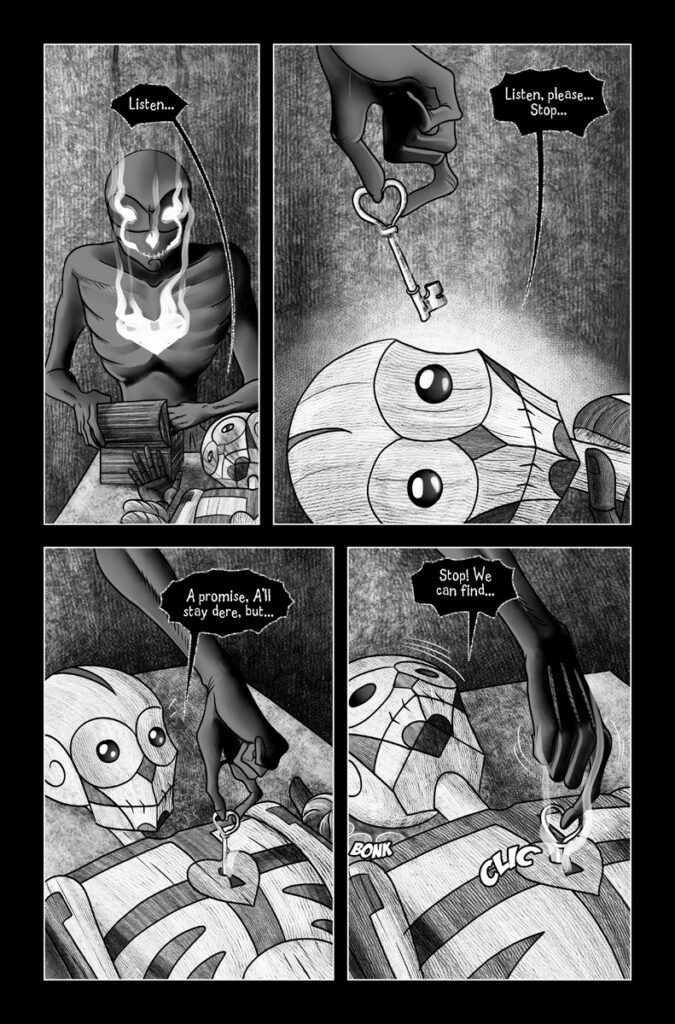 So instead, I decided he was going to hang the key to his neck… And promptly forgot to draw it half the time.